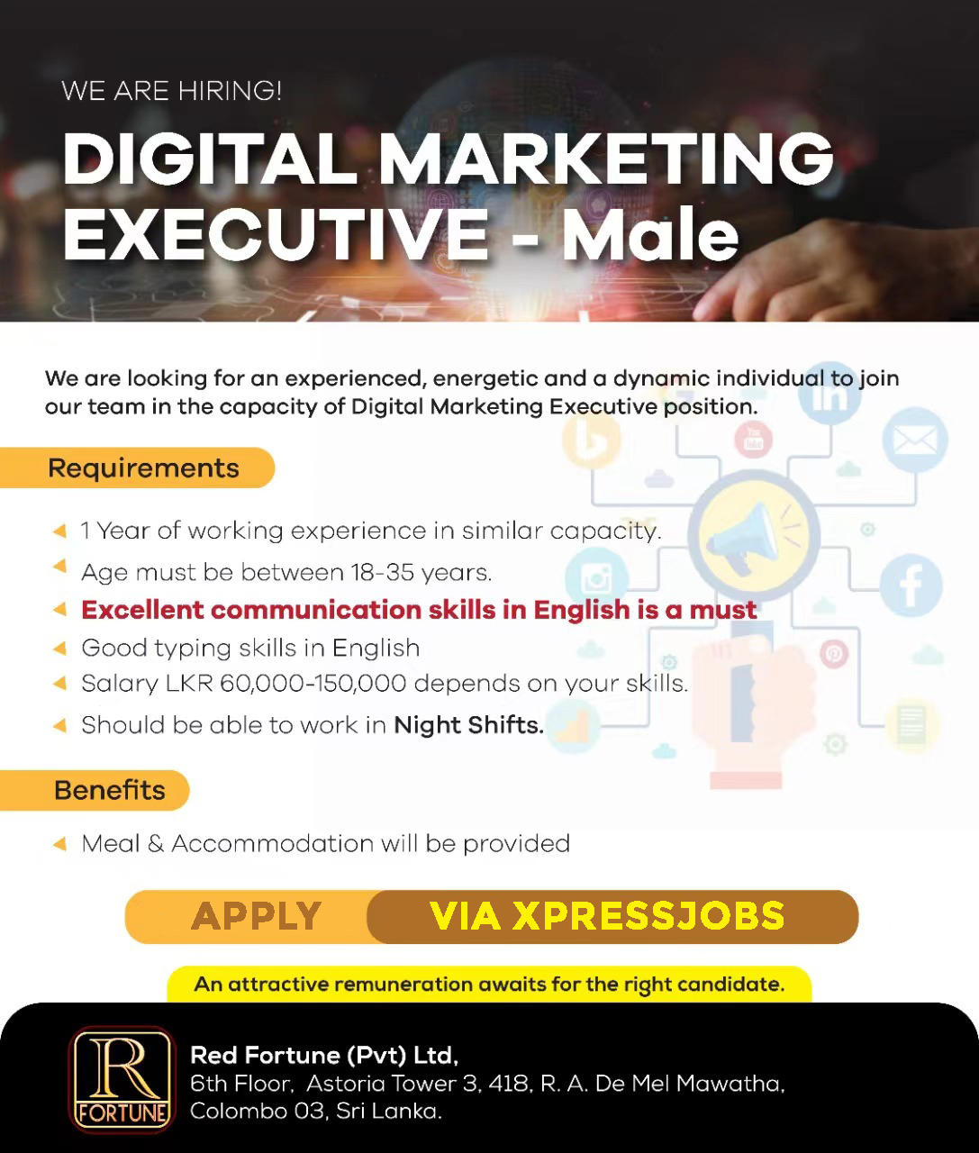 Digital Marketing Executive Male Red Fortune Xpressjobs